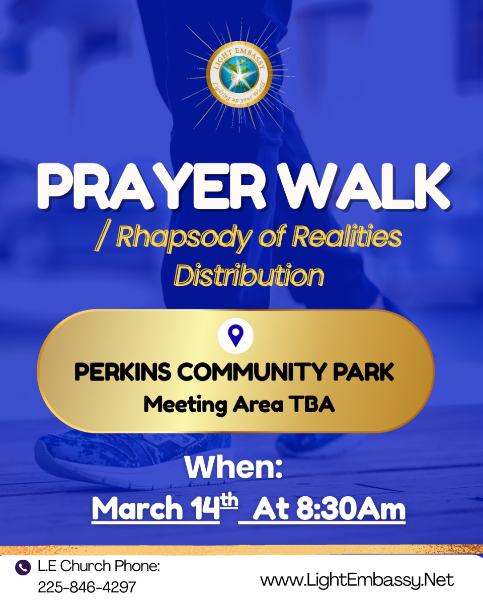 Join us as we walk and pray, taking over the territory of this land for Jesus.